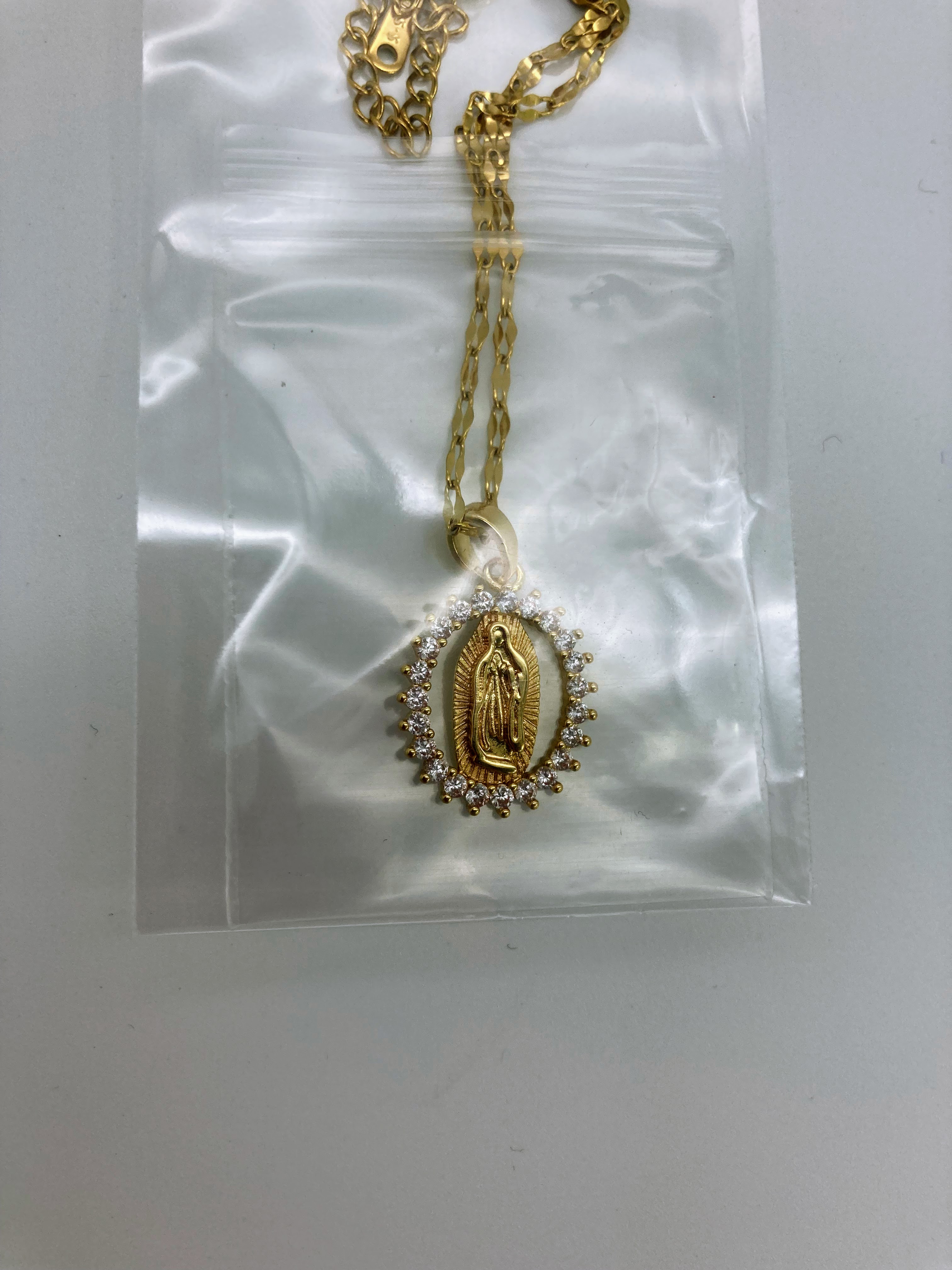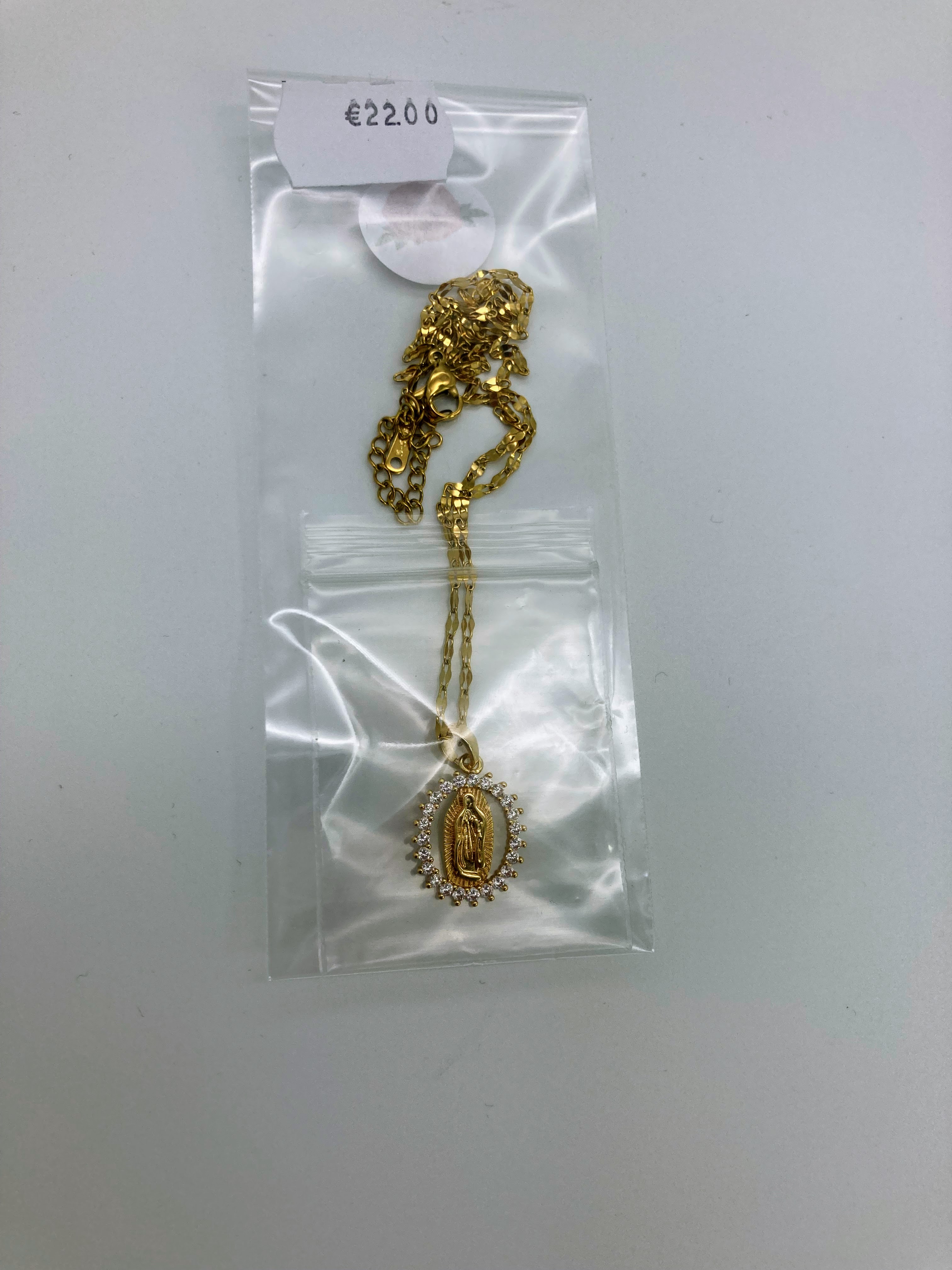Madonna Anhänger mit Kette goldfarben, Glassteine